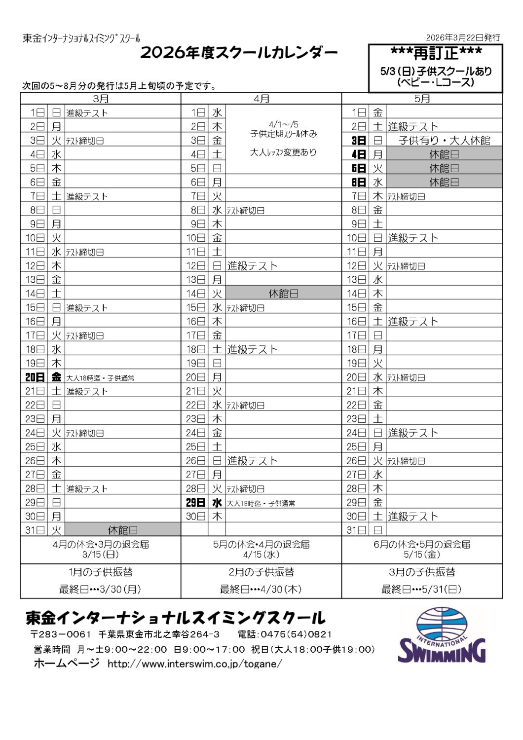 スクールカレンダ―(3~5月 *再*訂正版)をアップしました。